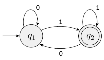 따라서 이 오토마타의 sementics는 1로 끝나는 string을 찾는 것이다.