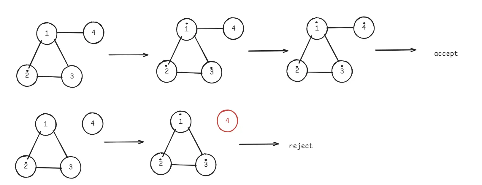 - 모든 노드를 스캔해 .이 찍히지 않은 노드가 1개라도 있다면 reject, 모두 .이라면 accept