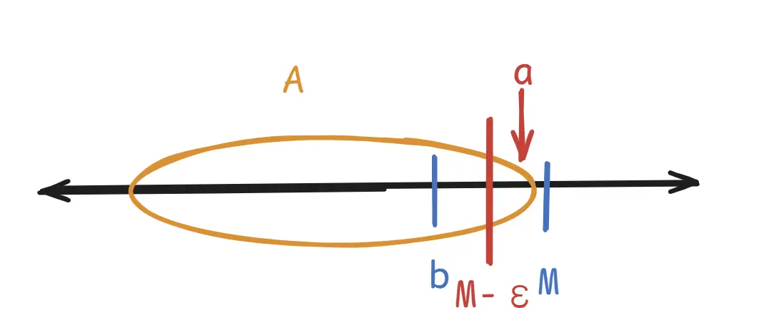 -> 따라서 M-ε보다 큰 a가 A안에 존재하면 M은 상한이어야 함